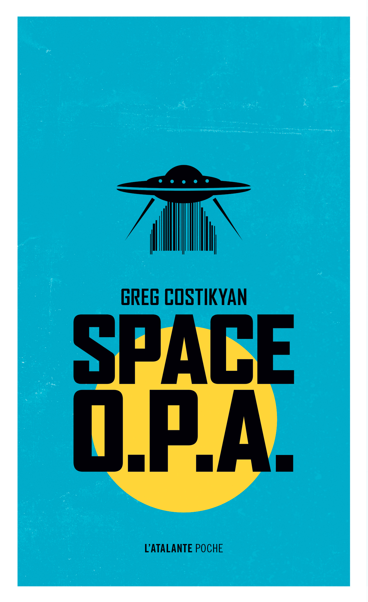 Space O.P.A. de Greg Costikyan, couverture de Leraf, traduction de Frank Reichert, aux éditions Atalante poche (sortie VO en 1999, sortie VF en 2003, présente édition de 2018), 368 pages.