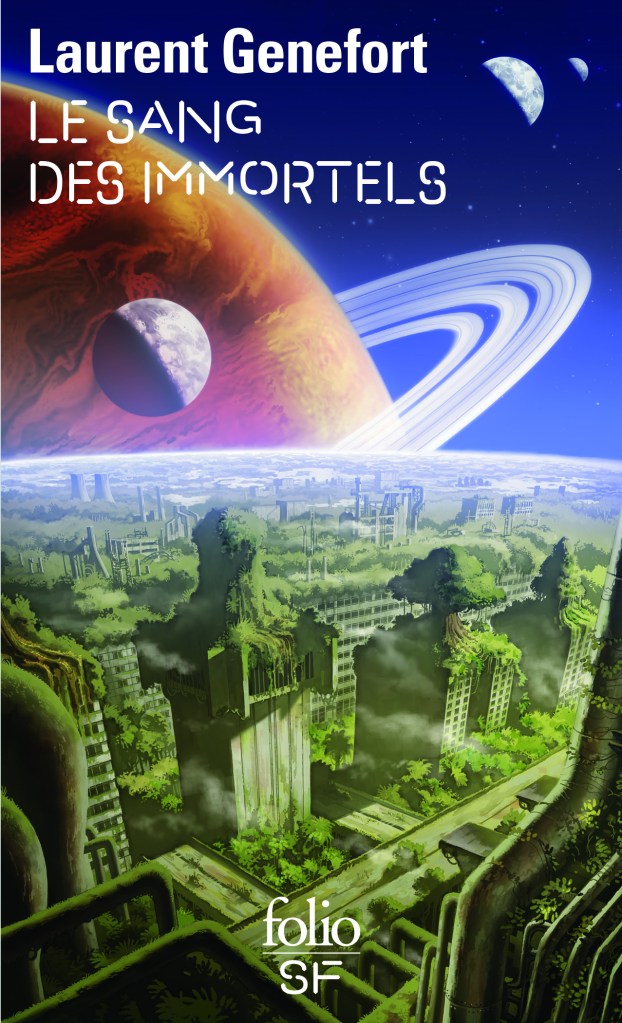 Le sang des immortels de Laurent Genefort, illustration de couverture de Pierre Droal, aux éditions FolioSF (première édition en 1977, Fleuve noir, présente édition de 2019), 272 pages.